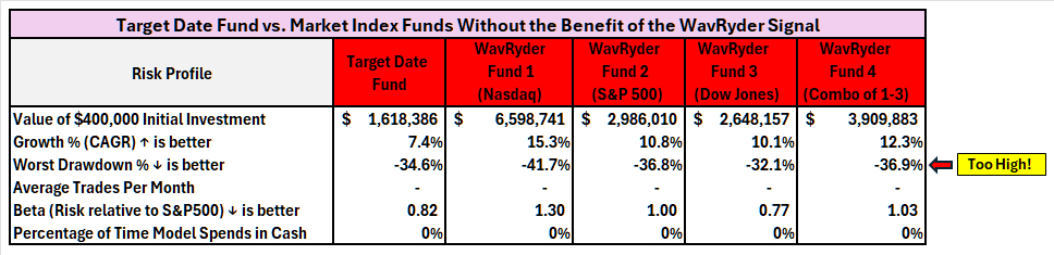 Comparing Target Date Funds to WavRyder Signal Informed Alternatives